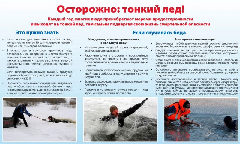 - Не надо барахтаться и наваливаться всем телом на тонкую кромку льда, так как под тяжестью тела он будет обламываться.